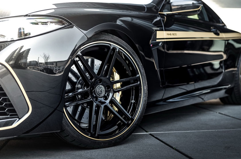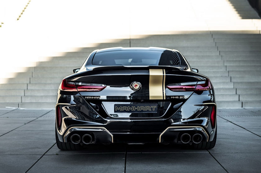 Проект MH8 800, в рамках которого модернизировали седан BMW, не ограничился только техническими изменения, ателье Manhart добавило своего фирменного чёрно-золотого шика, во внешность M8. Кузов авто окрашен в чёрный цвет с золотыми полосами, укомплектована BMW M8 21-дюймовыми дисками с низкопрофильной резиной, диффузором и спойлером из углеродного волокна, карбоновым сплитером на переднем бампере, а так-же 100-миллиметровым наконечником выхлопной системы. Интерьер претерпел изменения в виде карбоновых элементов, а логотипы BMW - заменены на Manhart.