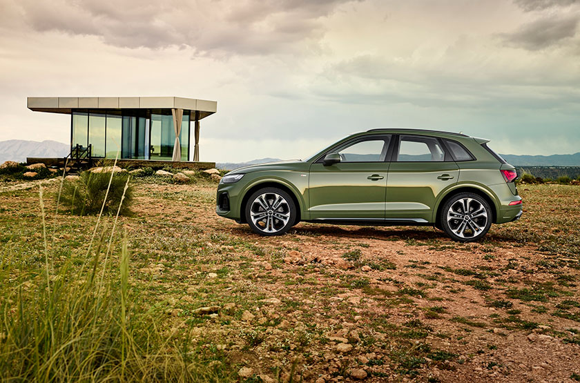 Рестайлинговый Audi Q5 получил восьмиугольную решётку радиатора Singleframe, которая теперь отделена от фар перемычками в цвет кузова. Бамперы стали более пухлыми, что дало прибавку в длину на 19 мм, боковые воздухозаборники увеличились в высоту и получили вставки, а новые накладки на пороги, призваны сделать дорожный просвет визуально больше.