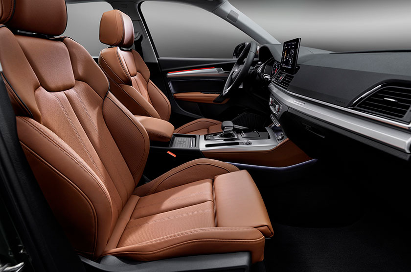 Интерьер, обновлённого Q5, почти не изменился, была добавлена мультимедийная система Modular Infotainment Platform (MIB 3) с 10,1-дюймовым центральным дисплеем, на центральном тоннеле убрали блок управления с шайбой, а за управление мультимедийной системой, теперь отвечает тачскрин и голосовые команды. Приборная панель доступна, как в аналоговом, так и в цифровом виртуальном исполнении, с экраном диагональю 12,3 дюйма.