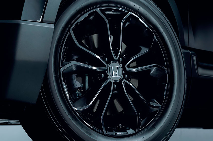 Кузов окрашен в ультра-чёрный цвет, фары и задние фонари в Honda CR-V Black Edition затемнены, решётка радиатора приобрела тёмную хромированную отделку, а обута, чёрная CR-V, в колёса с чёрными алюминиевыми дисками на 18 дюймов.