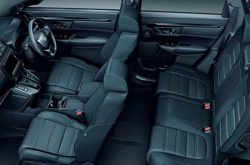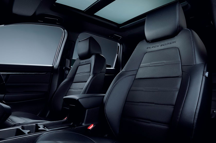 Премиальная версия CR-V Black Edition оснащается двумя двигателями на выбор, бензиновым 4-тактным турбомотором VTEC объёмом 1.5 литра и мощностью 190 л.с., также доступен гибридный 2.0 литровый атмосферник с электромотором, мощностью 215 л.с.
